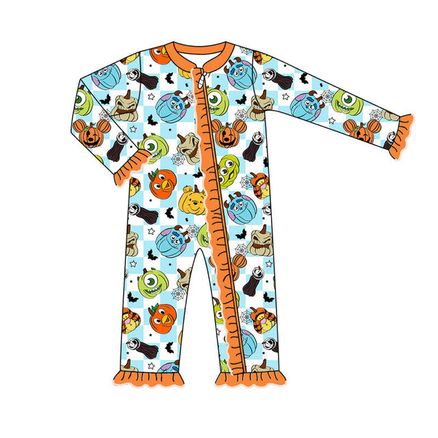Plaid mouse monster eye pumpkin girls Halloween zipper romper