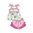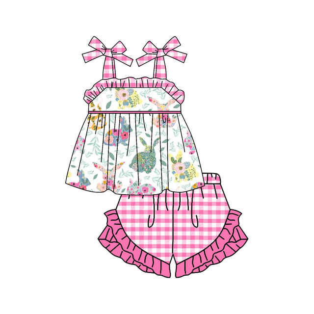 Plaid straps floral eggs tunic shorts girls Easter outfits