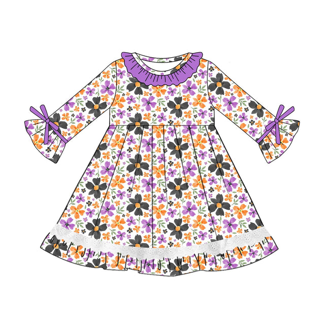 Purple ruffle long sleeves witches floral girls Halloween dress