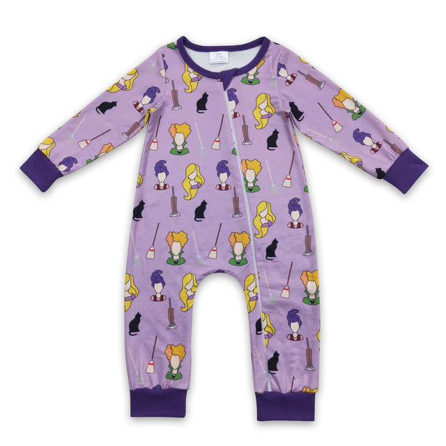 Purple witches baby girls Halloween zipper romper - 0-3M is backordered and will ship as soon as it is back in stock.