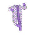 purple yellow green crab print baby girl long sleeve romper - 0-3M is backordered and will ship as soon as it is back in stock.