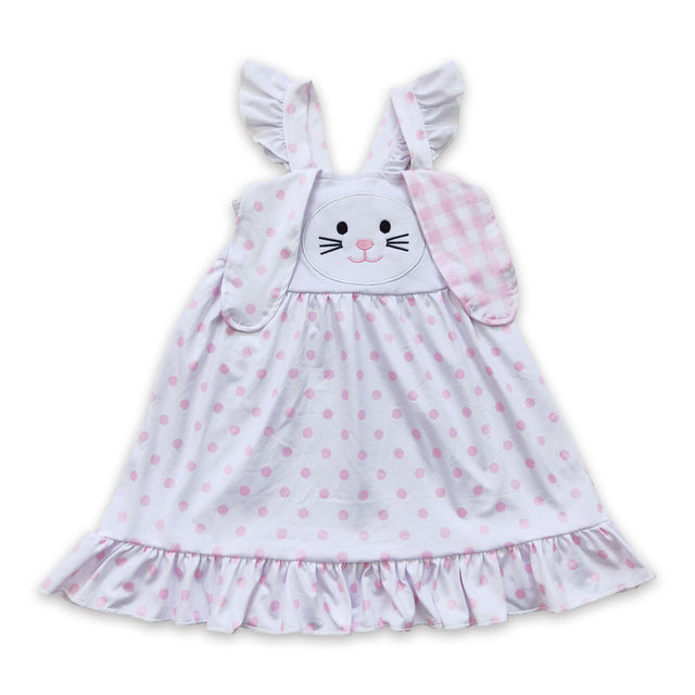 Rabbit embroidery ears polka dots baby girls easter dress - 3-6M is backordered and will ship as soon as it is back in stock.