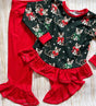 Red green bow cat ruffle top pants girls clothing