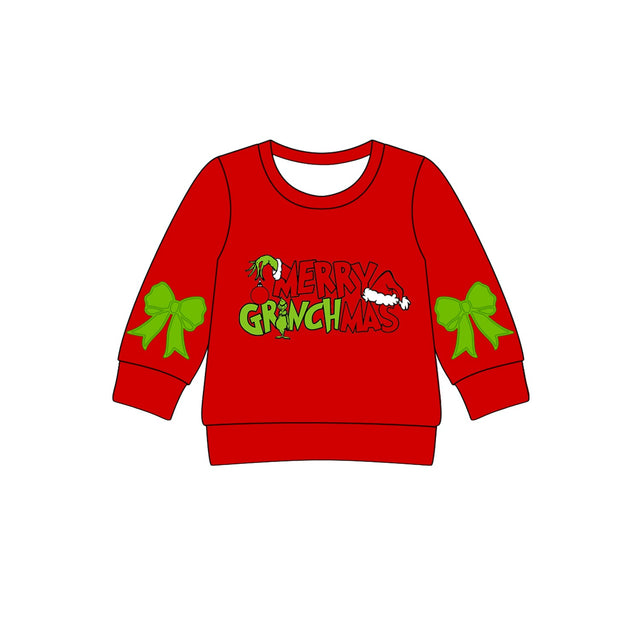 Red long sleeves merry green face Christmas bow girls shirt - 3-6M is backordered and will ship as soon as it is back in stock.