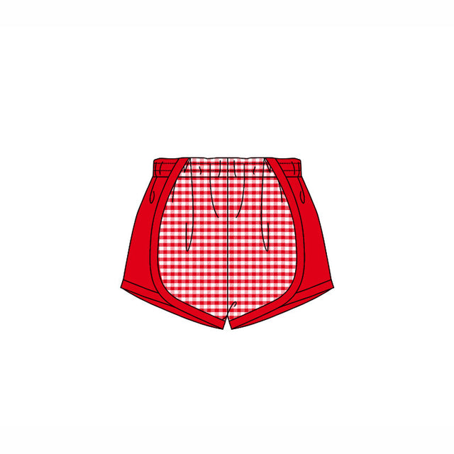 Red plaid patchwork kids girls summer shorts - 3-6M is backordered and will ship as soon as it is back in stock.