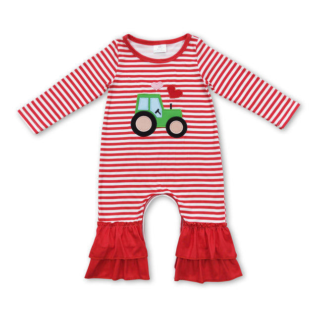 Red stripe long sleeves heart truck baby girls valentine's romper