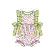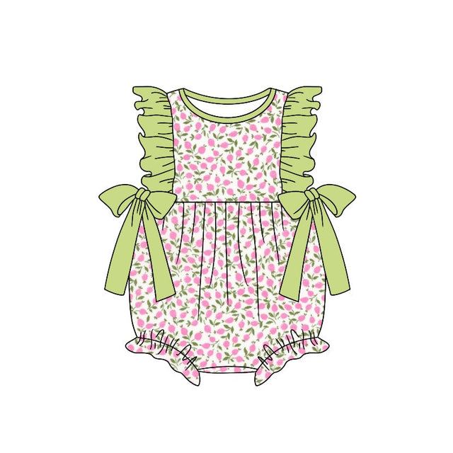 Ruffle pink floral bow baby girls summer romper - 0-3M is backordered and will ship as soon as it is back in stock.