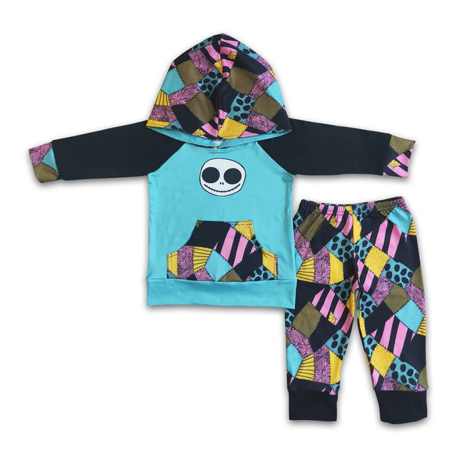 Skull screen print hoodie patchwork pants boy Halloween outfits