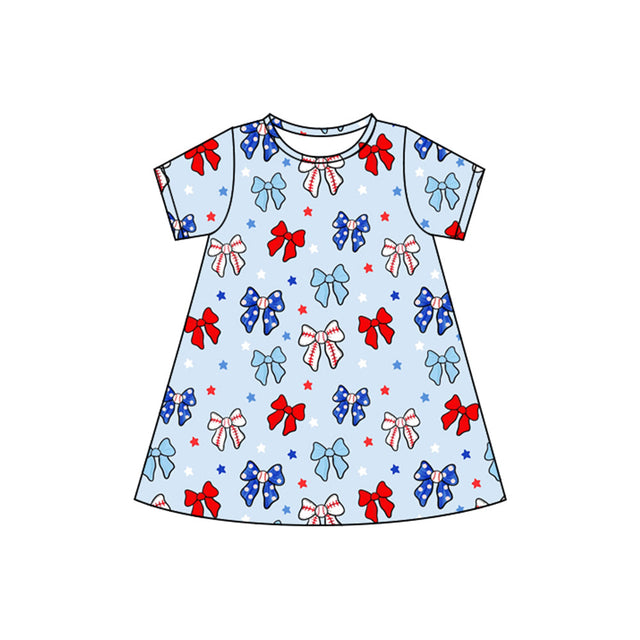 Short sleeves baseball bow kids girls 4th of july dress - 3-6M is backordered and will ship as soon as it is back in stock.