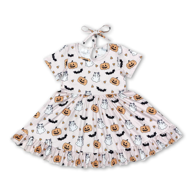 Short sleeves bat pumpkin ghost kids girls Halloween dress