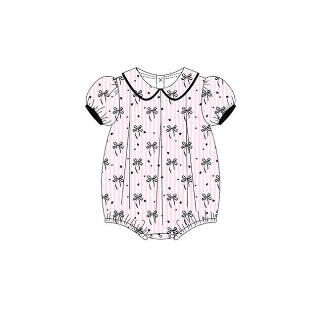 Short sleeves black bow stripe baby girls summer romper - 0-3M is backordered and will ship as soon as it is back in stock.