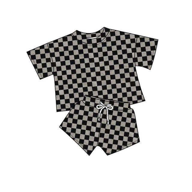 Short sleeves black plaid top shorts kids girls clothes