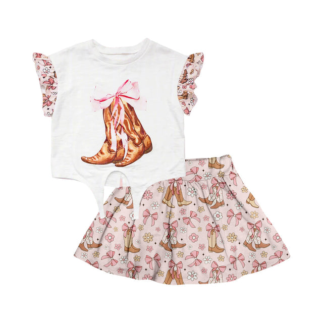 Short sleeves boots top skirt western girls clothing - 3-6M is backordered and will ship as soon as it is back in stock.