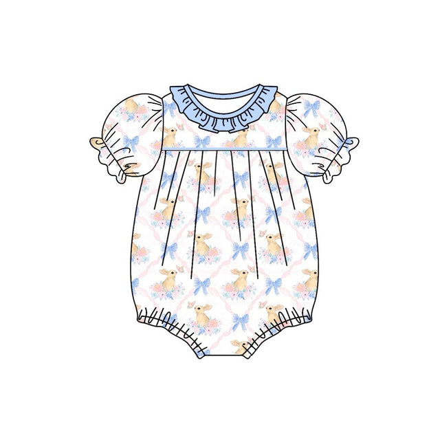 Short sleeves bow bunny baby girls Easter romper - 0-3M is backordered and will ship as soon as it is back in stock.