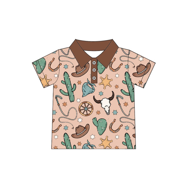Short sleeves bull skull cactus boys western polo shirt - 3-6M is backordered and will ship as soon as it is back in stock.