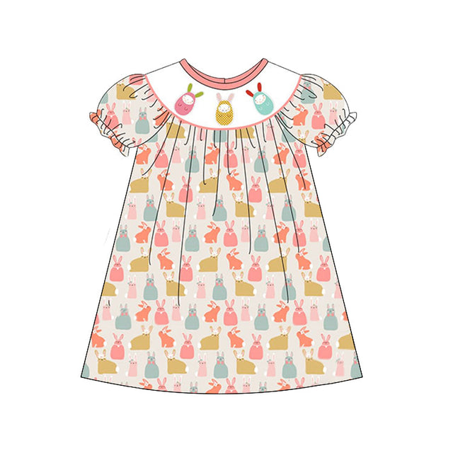 Short sleeves bunny eggs kids girls Easter dresses