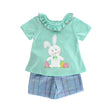 Short sleeves bunny eggs top plaid shorts girls Easter clothes