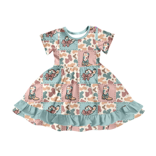 Short sleeves camo bow hat boots ruffle girls dresses