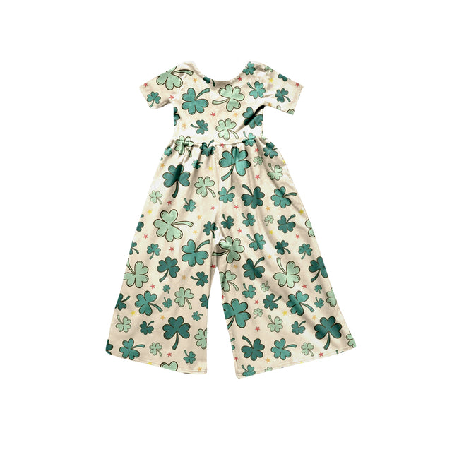 Short sleeves clover kids girls st patrick's day jumpsuit