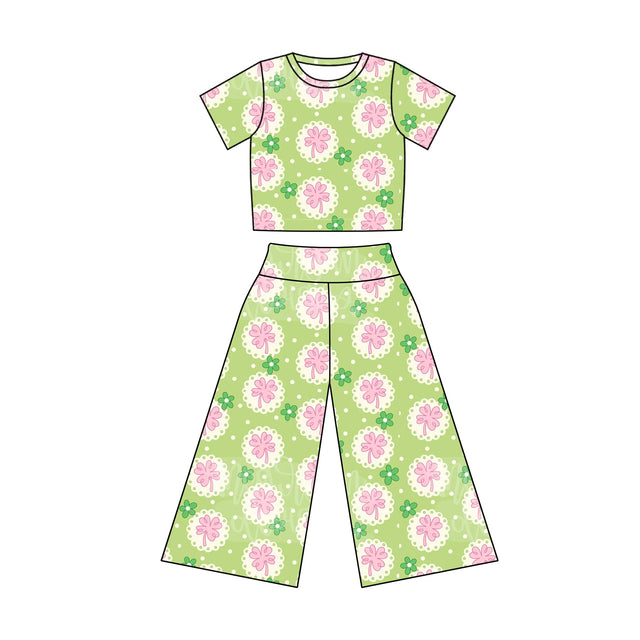 Short sleeves clover top pants girls St Patrick's outfits - 3-6M is backordered and will ship as soon as it is back in stock.