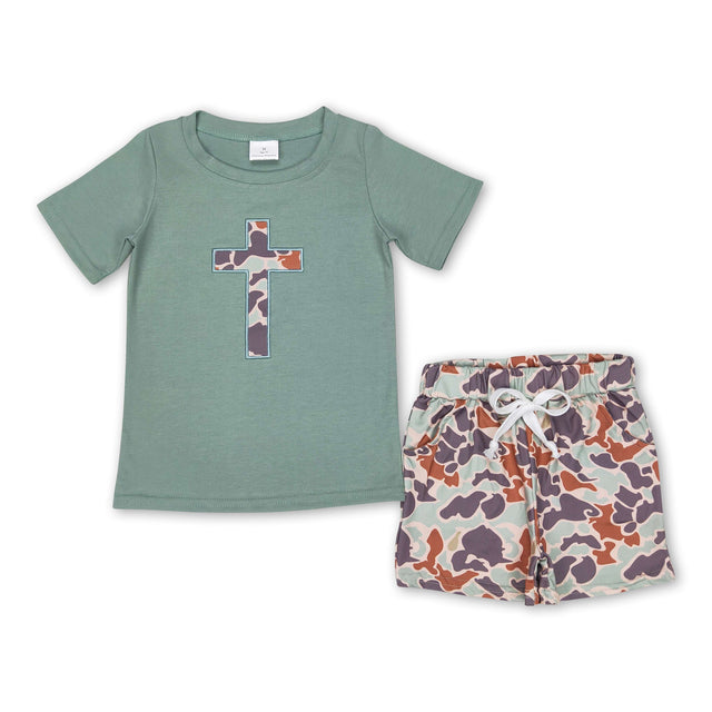 Short sleeves cross top camo shorts kids boy easter outfits - 3-6M is backordered and will ship as soon as it is back in stock.