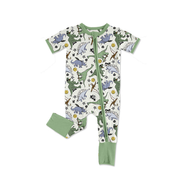 Short sleeves dinosaur baby boy zipper romper