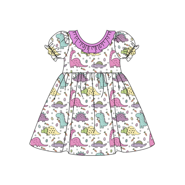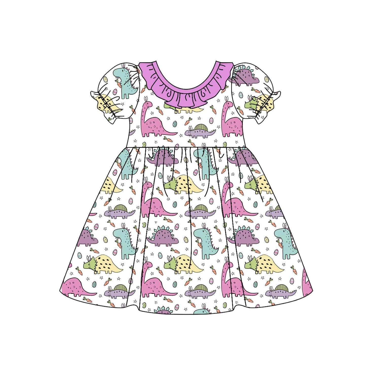 Short sleeves dinosaur carrot eggs girls Easter dresses