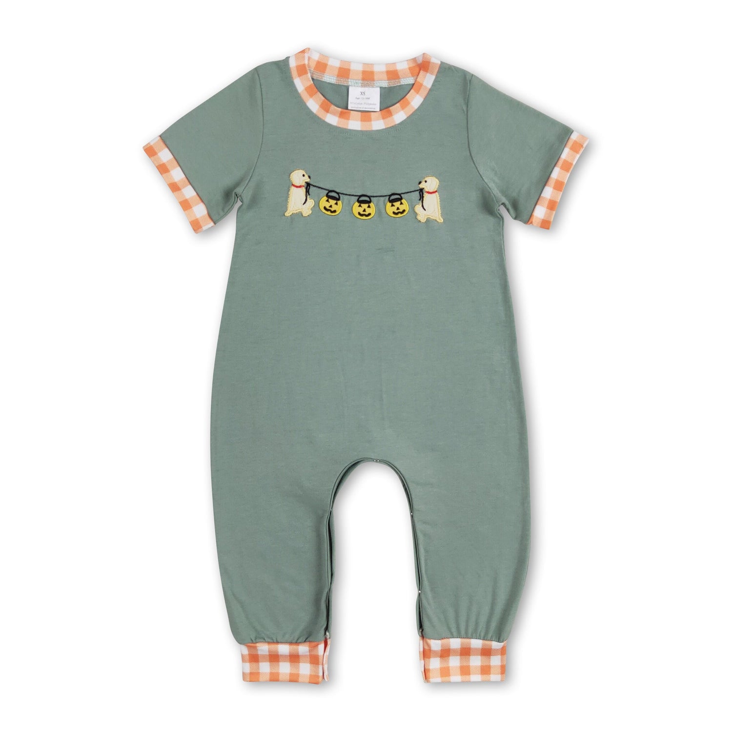 Short sleeves dog pumpkin kids boys Halloween romper - 0-3M is backordered and will ship as soon as it is back in stock.