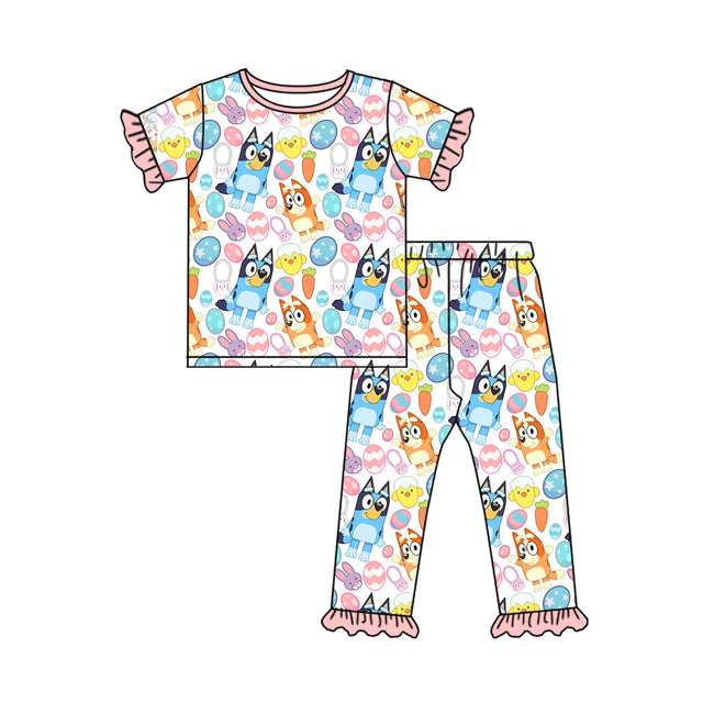 Short sleeves eggs dog bunny baby girls Easter pajamas
