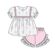 Short sleeves floral light blue bow tunic shorts girls clothing