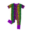 Short sleeves leopard baby kids Mardi Gras zipper romper - 0-3M is backordered and will ship as soon as it is back in stock.