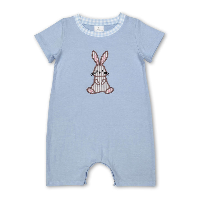 Short sleeves light blue bunny baby boys Easter romper - 0-3M is backordered and will ship as soon as it is back in stock.
