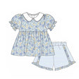 Short sleeves light blue tunic stripe ruffle shorts girls clothes