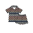 Short sleeves multi color plaid kids button down pajamas