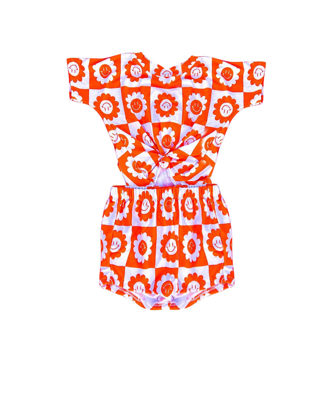 Short sleeves orange smile flower baby girls bummies set - 3-6M is backordered and will ship as soon as it is back in stock.