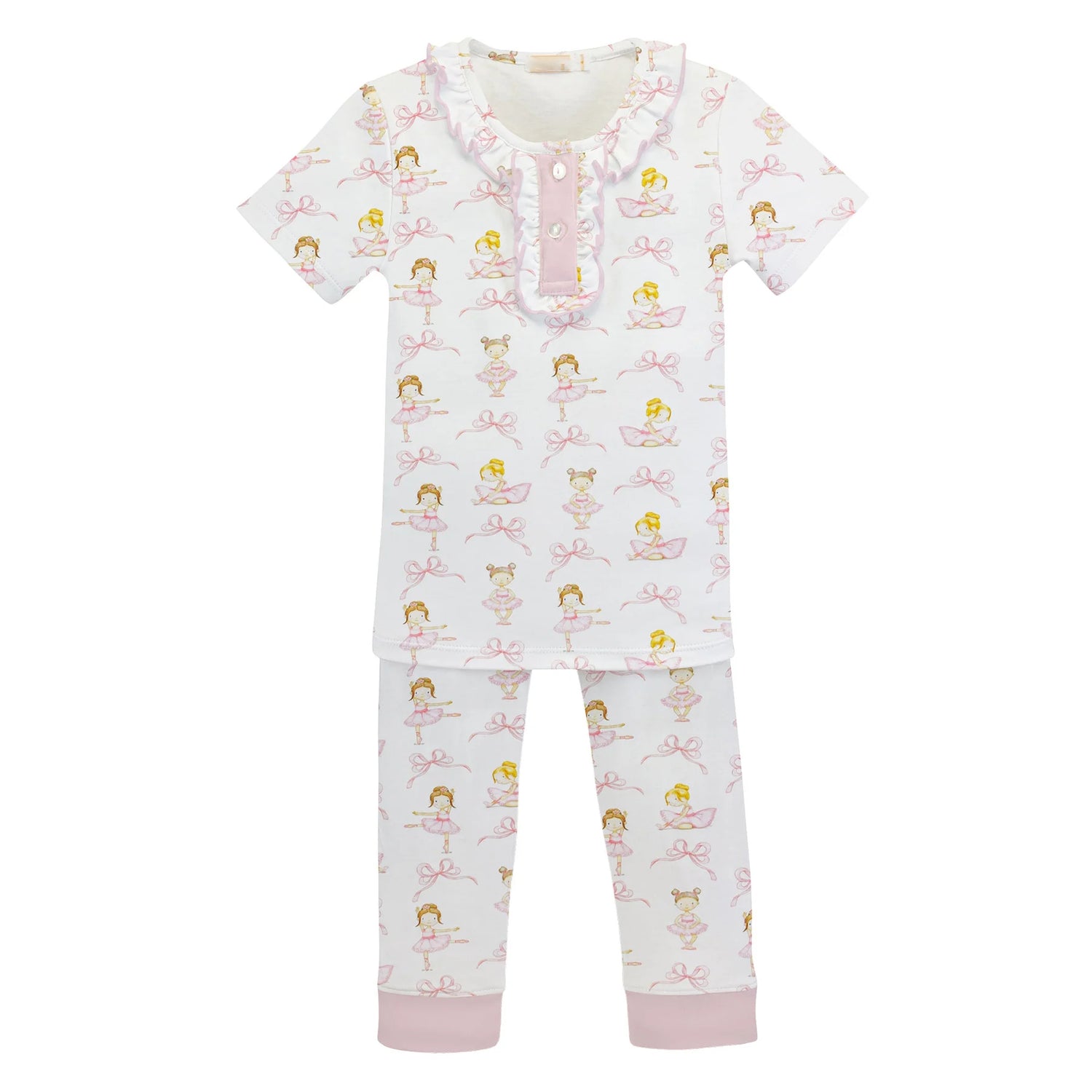 Short sleeves pink bow dance kids girls pajamas
