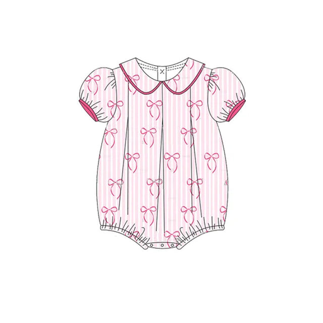 Short sleeves pink bow stripe baby girls summer romper - 0-3M is backordered and will ship as soon as it is back in stock.