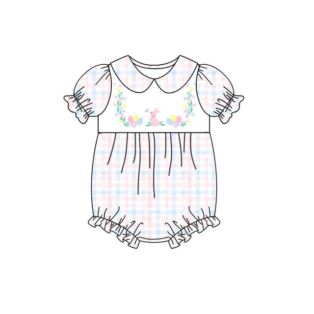 Short sleeves plaid bunny floral baby girls Easter romper