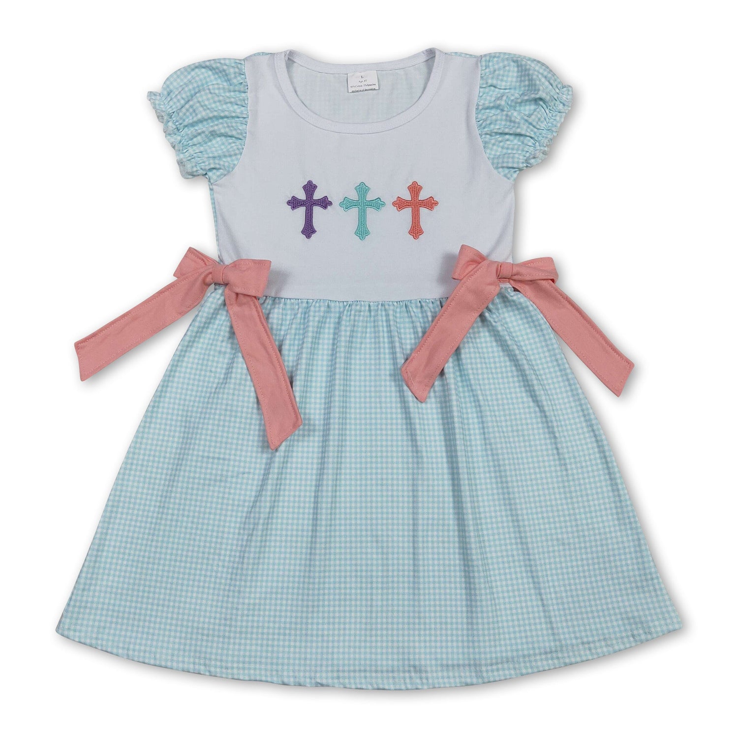Short sleeves plaid cross kids girls Easter dresses - 3-6M is backordered and will ship as soon as it is back in stock.