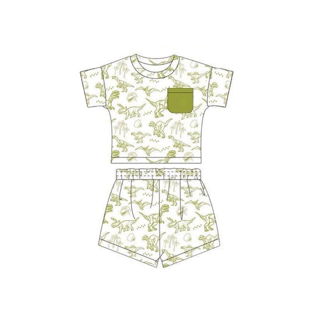 Short sleeves pocket dinosaur shirt shorts boys clothing