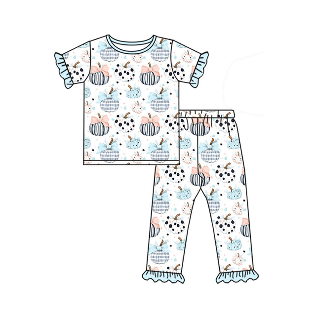 Short sleeves pumpkin bow baby girls fall pajamas - 3-6M is backordered and will ship as soon as it is back in stock.