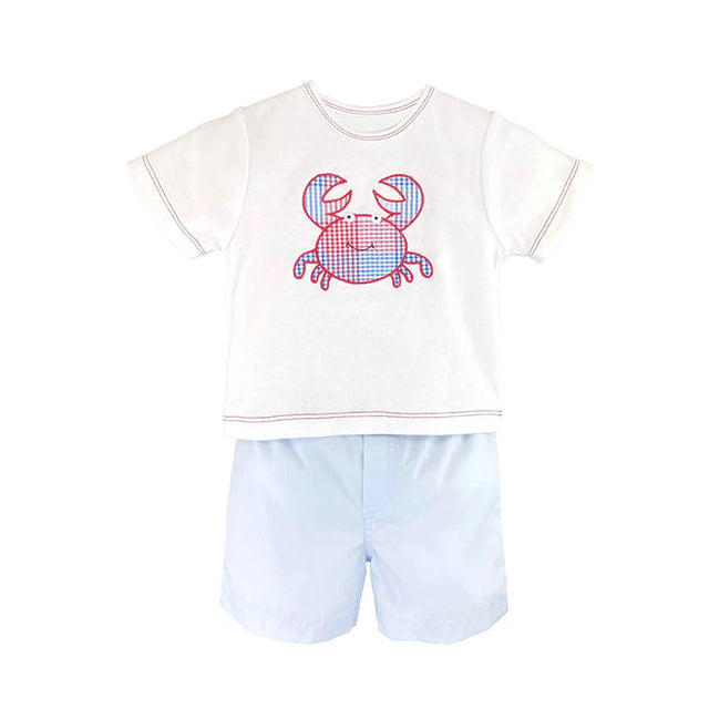 Short sleeves white crab top shorts boys summer outfits - 3-6M is backordered and will ship as soon as it is back in stock.