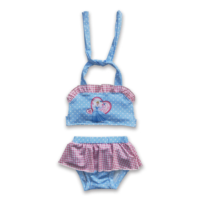 Sky blue polka dots princess baby girls summer swimsuit