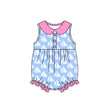 Sleeveless blue boat baby girls summer romper