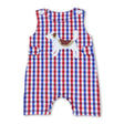 Sleeveless dog red blue plaid boys 4th of july romper - 0-3M is backordered and will ship as soon as it is back in stock.