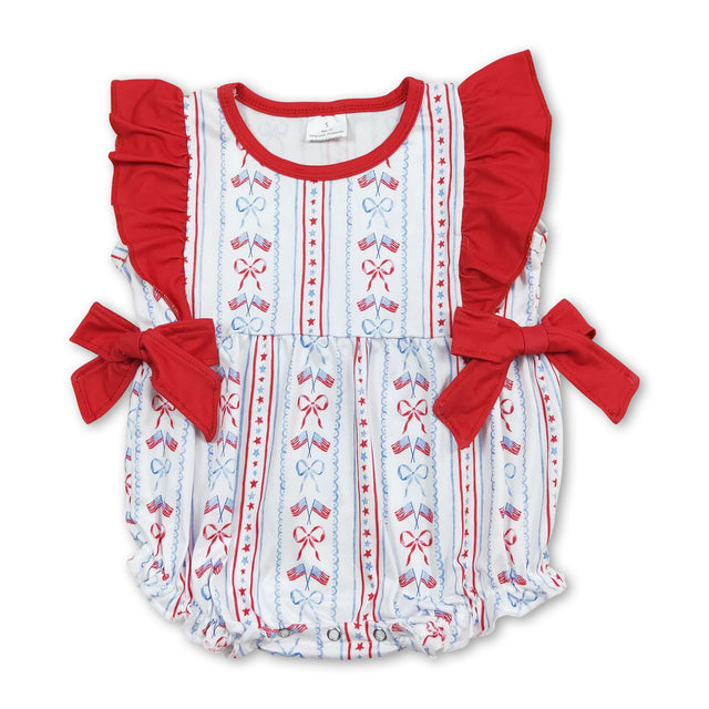 Sleeveless flag bow baby girls 4th of july romper - 0-3M is backordered and will ship as soon as it is back in stock.