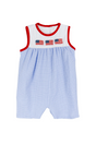 Sleeveless flag plaid baby boy 4th of july romper - 0-3M is backordered and will ship as soon as it is back in stock.