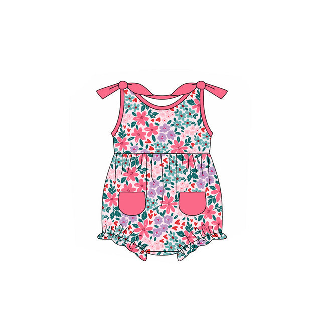 Sleeveless floral pockets baby girls spring summer romper - 0-3M is backordered and will ship as soon as it is back in stock.