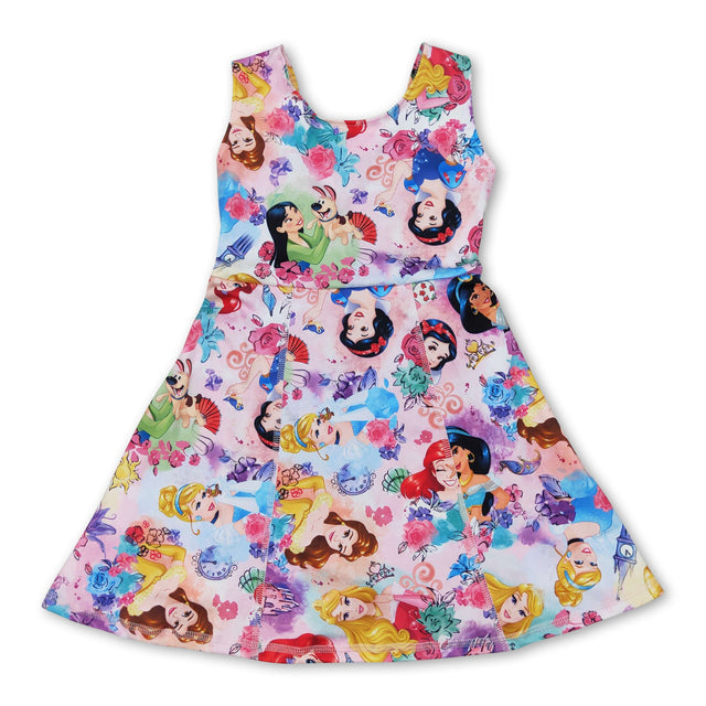 Sleeveless floral princess kids girls athletic dresses