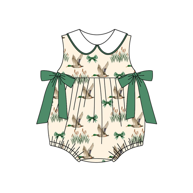 Sleeveless green bow duck baby girls summer romper - 0-3M is backordered and will ship as soon as it is back in stock.